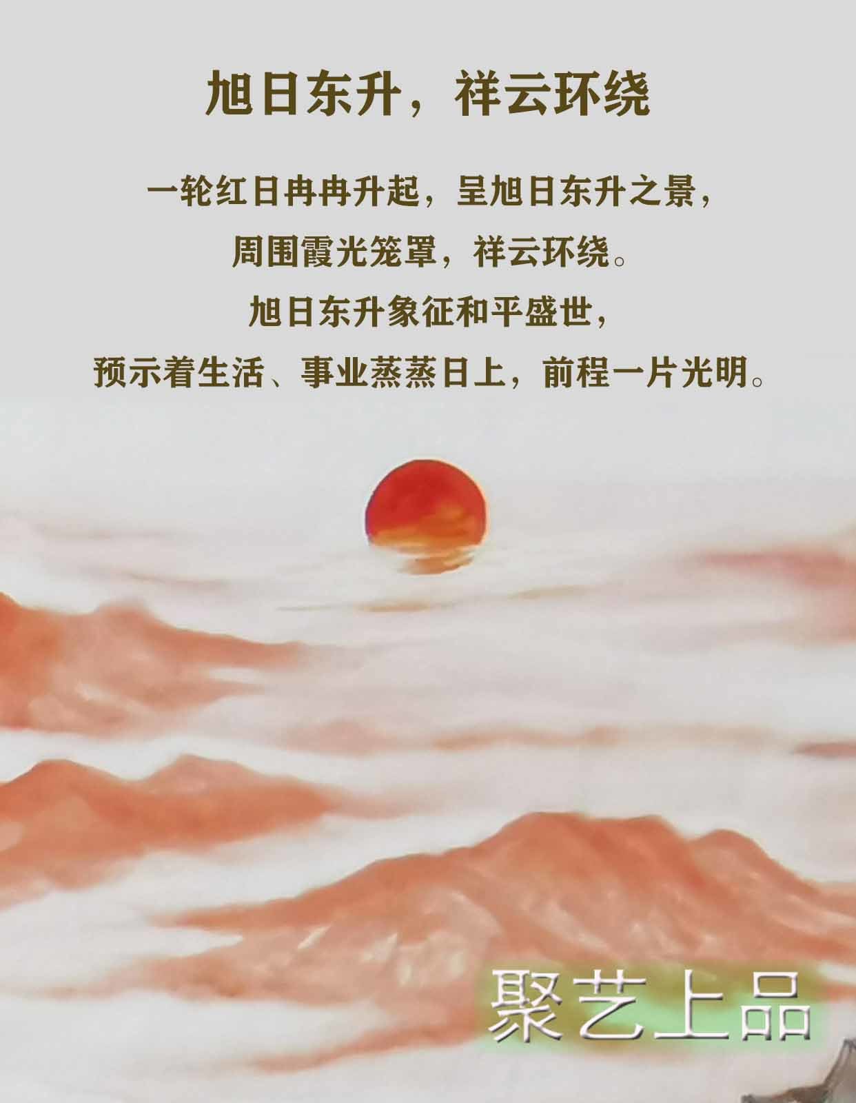 旭日东升象征和平盛世,预示着生活、事业蒸蒸日上,前程一片光明。