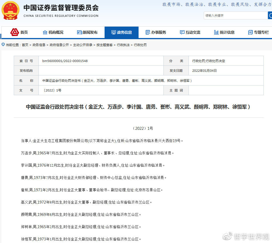 日前,证监会官网披露了2022年“一号罚单”——山东知名肥料企业金正大财务造假等问题遭到证监会处罚,时任董事长万连步被罚10年市场禁入。