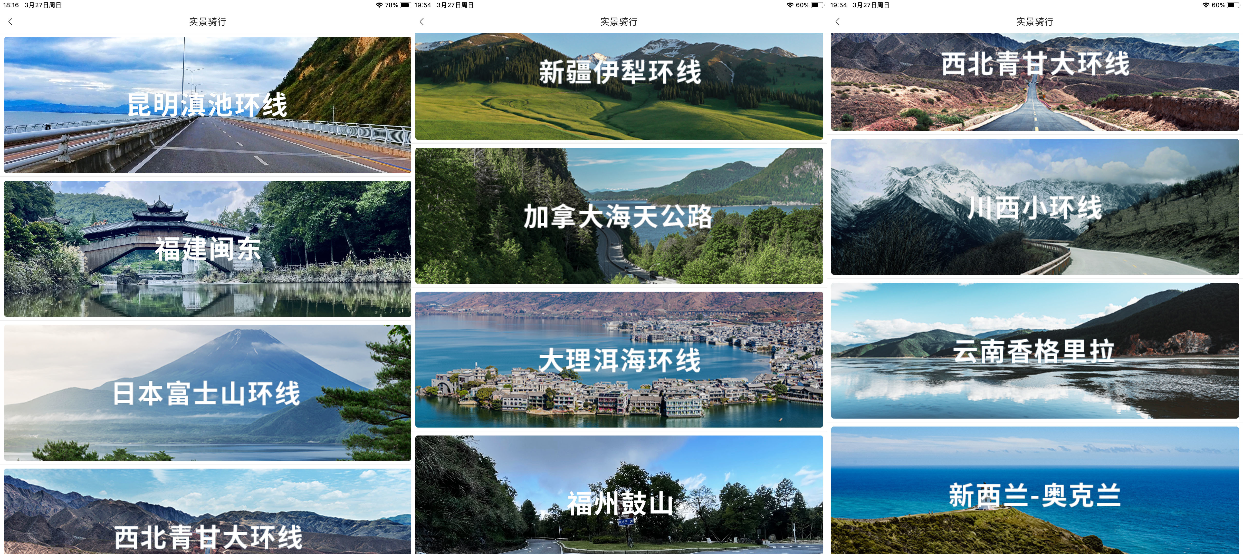 实景骑行这个功能我太喜欢了,在这个模式下骑行单车就好像骑着自行车在实地骑行,这个设计真不错。而且还可以根据需要选择骑行20分钟,30分钟,45分钟的路线,骑行时虽然人在室内,但相当于在家骑行观光旅游景点了,算是非常放松的运动了。