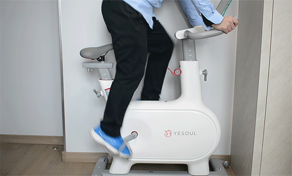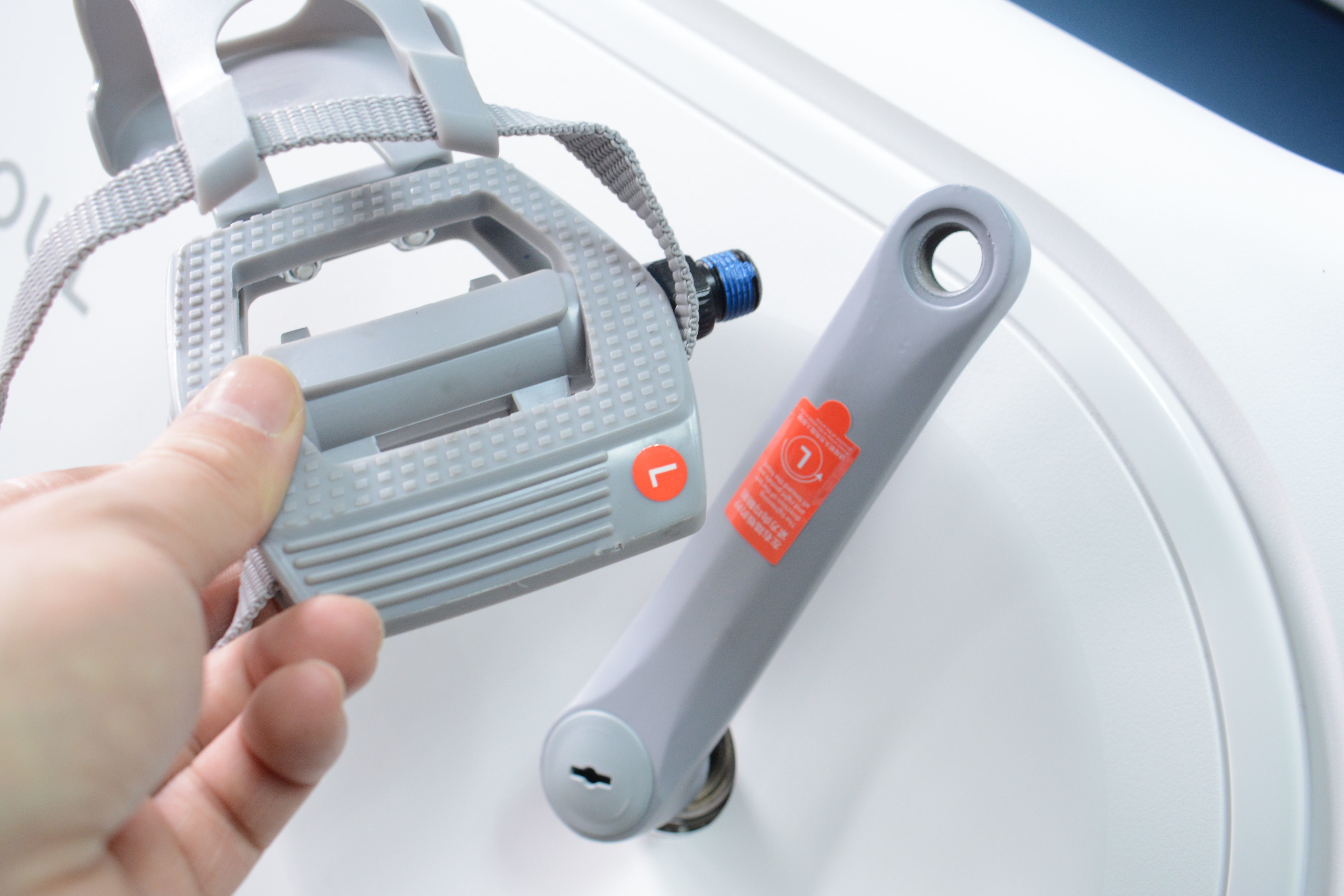 注意到一个细节,因为单车骑行的时候难免会有一定程度的震动,所以这款单车的防滑垫减震地垫设计得比较不错,而且还能调节高度,而且还增加了一个移动滚轮,这样当需要移动单车的时候,一个人就能推着单车走了,贴心。 单车的坐垫,前后,高低,包括车头的高低都可以根据自己的需求手动调节。