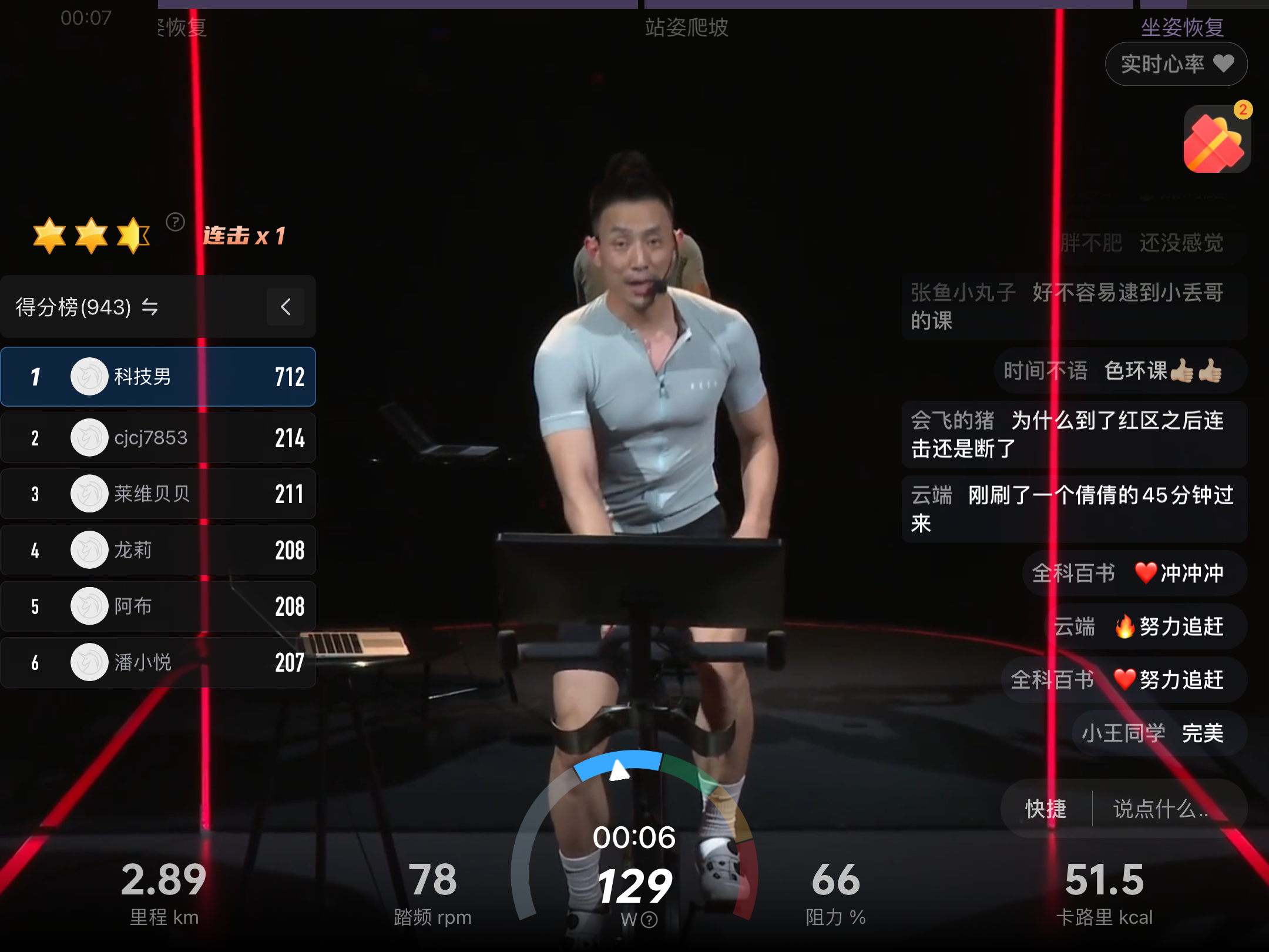 跟着节奏,调节阻力,调节骑行踏频,要注意的就是快速踏频后要缓慢降速,目前我的阻力一般调节到30-40,50就有点累人了,反正锻炼结束后,口渴的话就喝点开水补充一下水分,因为出汗,及时补充水分也是有必要的。