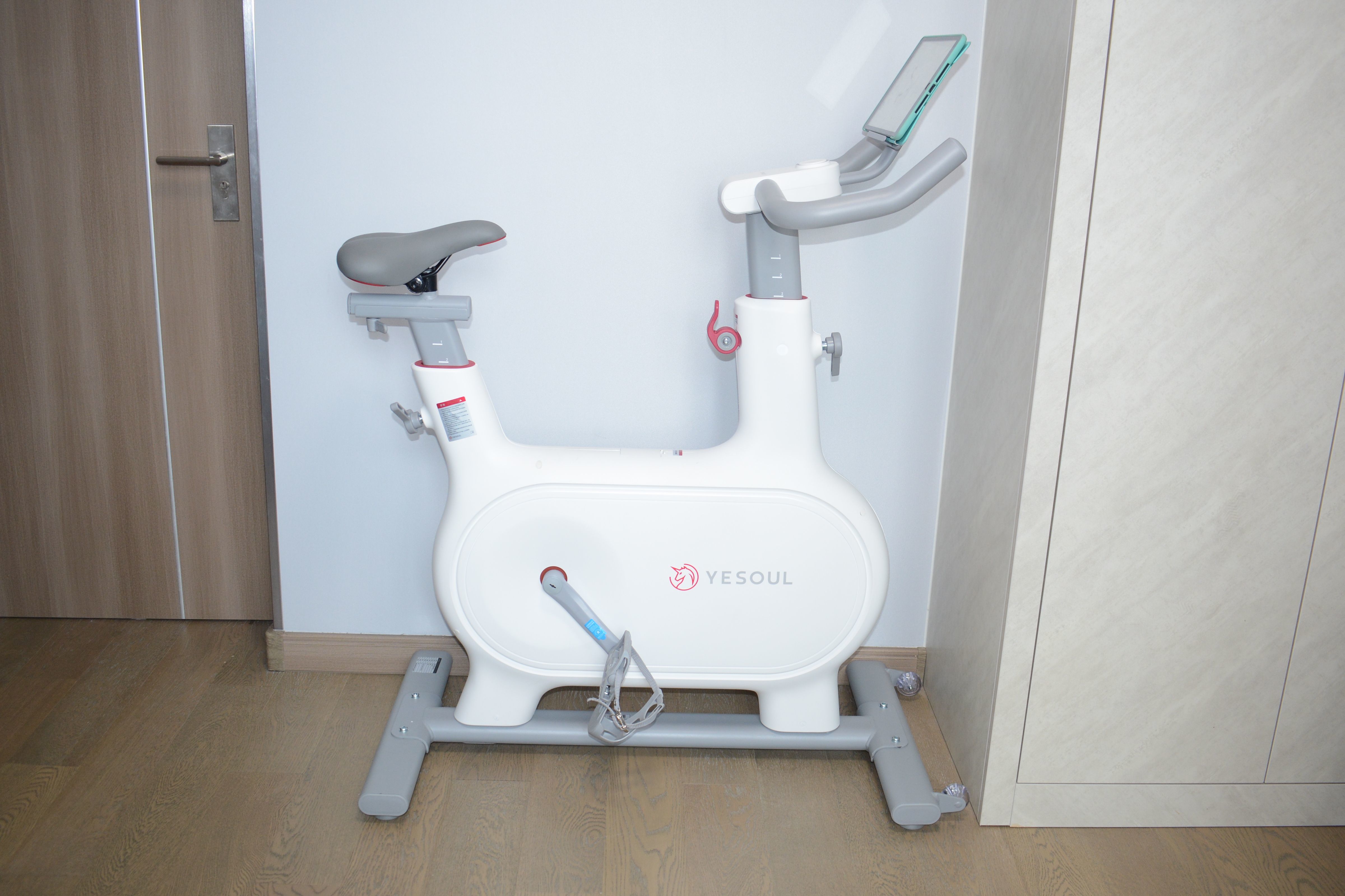 说来也巧,房子刚装修半年,房间里预留的一块空地正好可以放单车,而且这款单车的占地面积并不大,大概只有0.5㎡,所以布局上看上去还不错,不知道的人以为是定制的呢。