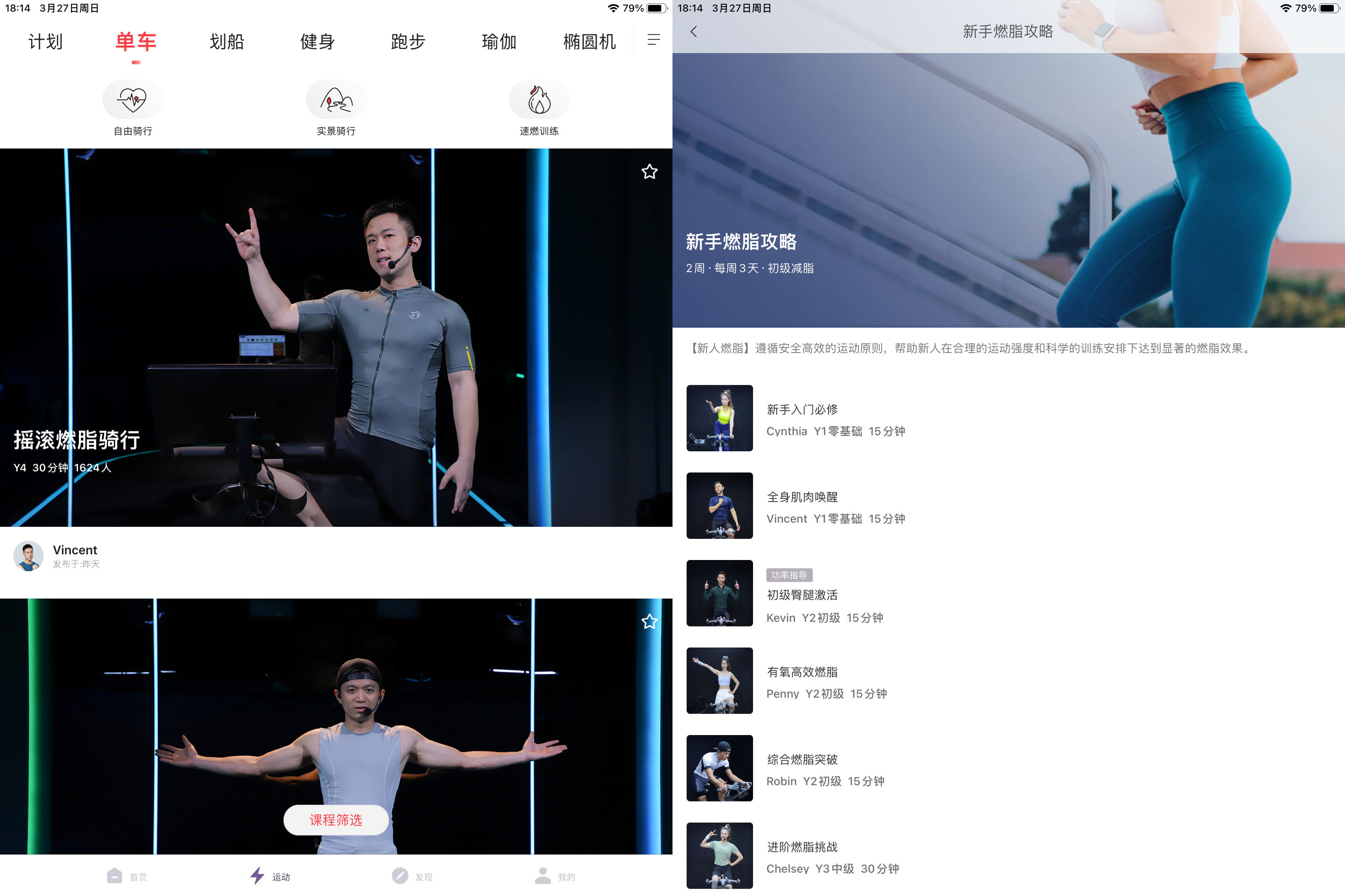 单车初次绑定app还送一个月会员,这个不错。作为一个运动类app,里面提供了各式各样的运动模式,还有训练课程,对于新手而言,开始就跟着视频练习还是很有必要的,这样才能更科学的训练,才能达到更好的运动效果,课程里还有很多类型的培训,有帅哥私教,也有美女私教,大家可以自由选择。