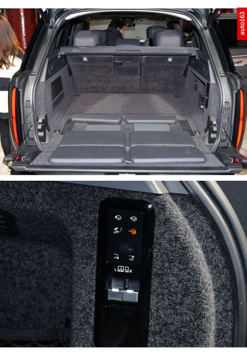 后备箱内部较为宽大且平整,其底板和两侧均使用地毯覆盖,显示出豪华车该有的样子。位于左侧的控制面板功能十分丰富,包含第二排座椅电动放倒、底盘升降等功能。