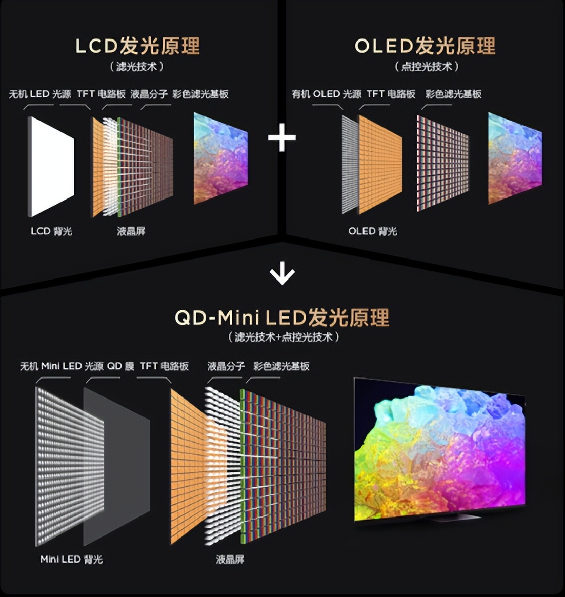 在显示技术上,TCL X11使用的是自研的第三代Mini LED 技术——QD-Mini LED 技术,它融合了QLED量子点技术,成功实现了OLED具备的超高对比度,同时拥有QLED具备的超高亮度、色域和寿命。对比目前市场上的其他Mini LED 产品,暗场星空无光晕,明暗对比黑得透彻,亮得出彩。