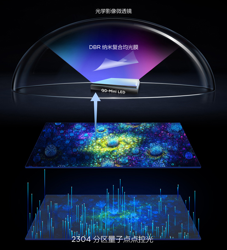 基于2000Nit的峰值亮度与Mini LED 精准控光的优势,即使是在环境光强烈的情况下,也依然可以清晰地看到电视的画面。它还搭载了DBR纳米复合均光膜及光学影像微透镜精准实现像素极点控光,做到了行业领先的高分区,85英寸版可以达到2304分区,在157%高色域技术的配合下,可以展示栩栩如生的画面细节与层次,观影、刷剧、看比赛的时候画面更为细腻,场景真实感更强,如此顶流的画质,喜欢居家看电影、刷剧的消费者很难不为它买单!