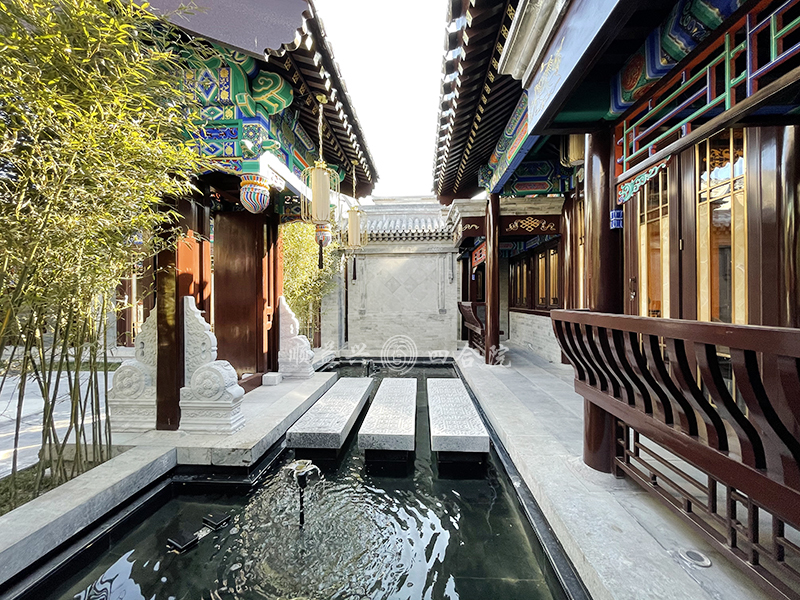 “不到园林,怎知春色如许”,临川先生一句话,写尽了我们对于园林的情思。而四合院,应是我们最能寄托心中的山水园林的存在了。眼前的院落,在一进院和二进院之间,以竹林为墙,活水为墁,在传统建筑格局中增添了更多创意,更仿佛有置身江南水乡之感。