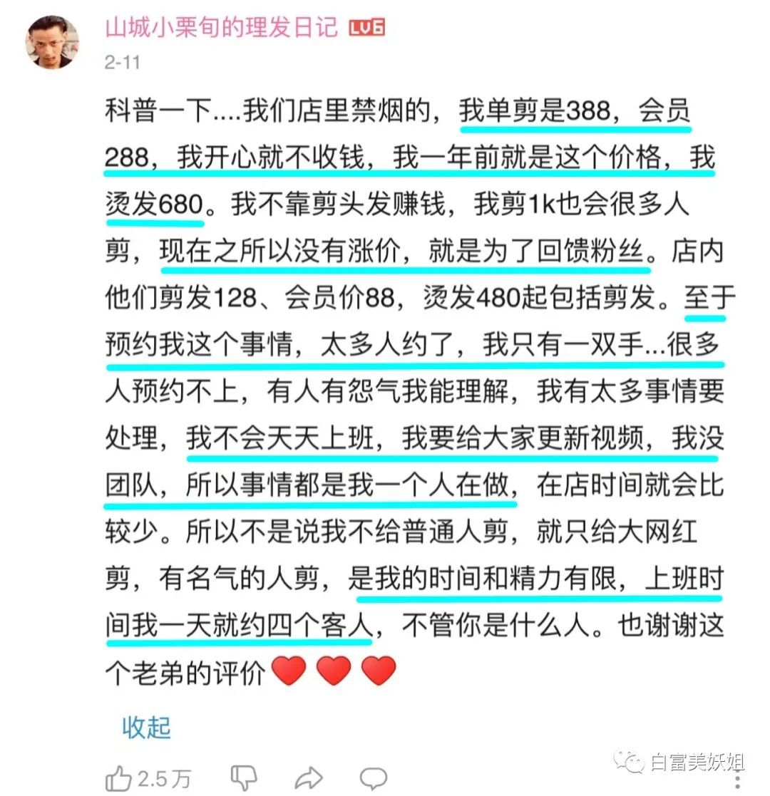还有diss他费用太高,走红以后服务态度不好。