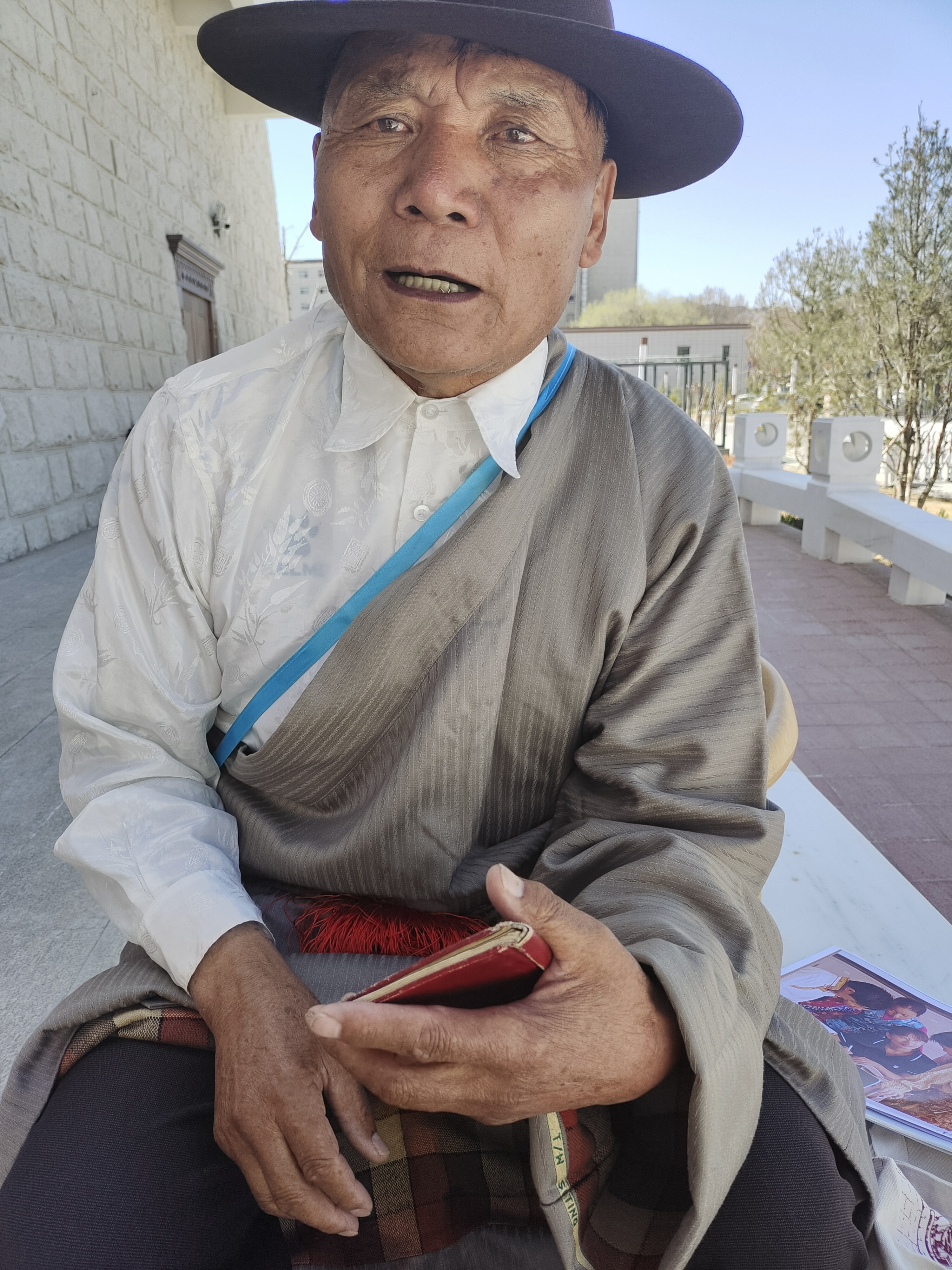 “当时感觉脸要裂开了,被抱得喘不过气。我出去是为了捡牛粪补贴家用,却被父亲打,感觉很委屈。”回忆往事,普次仁显得有些激动,他摘下头顶的毡帽,灰白的卷发因为出汗有点潮湿,“现在我明白了,我的父亲希望我好好活着!”