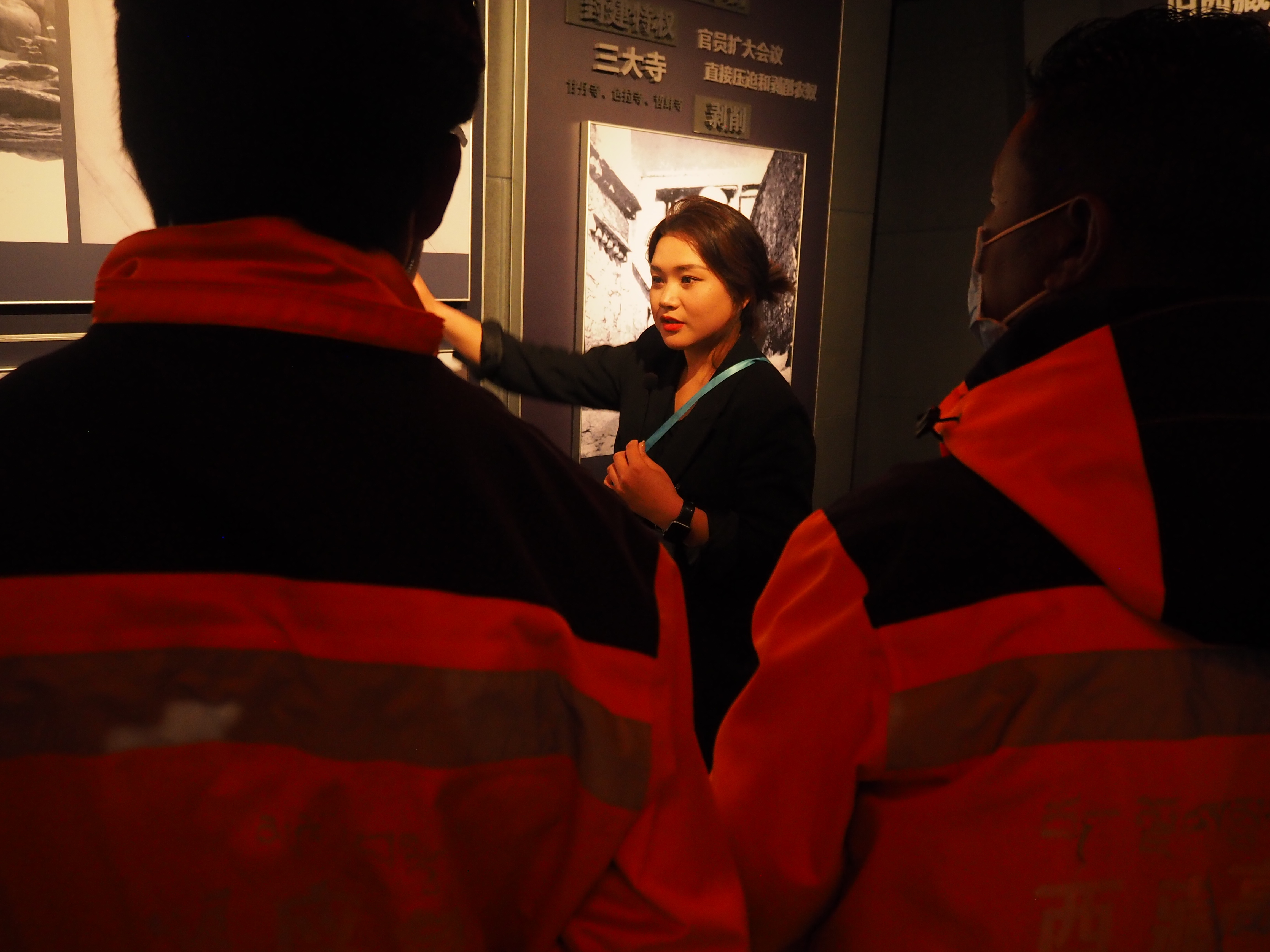 西藏百万农奴解放纪念馆里,普次仁和年轻讲解员们接力讲解。普次仁说:“帮助年轻的讲解员们更加了解这段历史也是我的责任,平时我会尽我所能帮助新一代的讲解员,也鼓励更多年轻人来了解历史。”