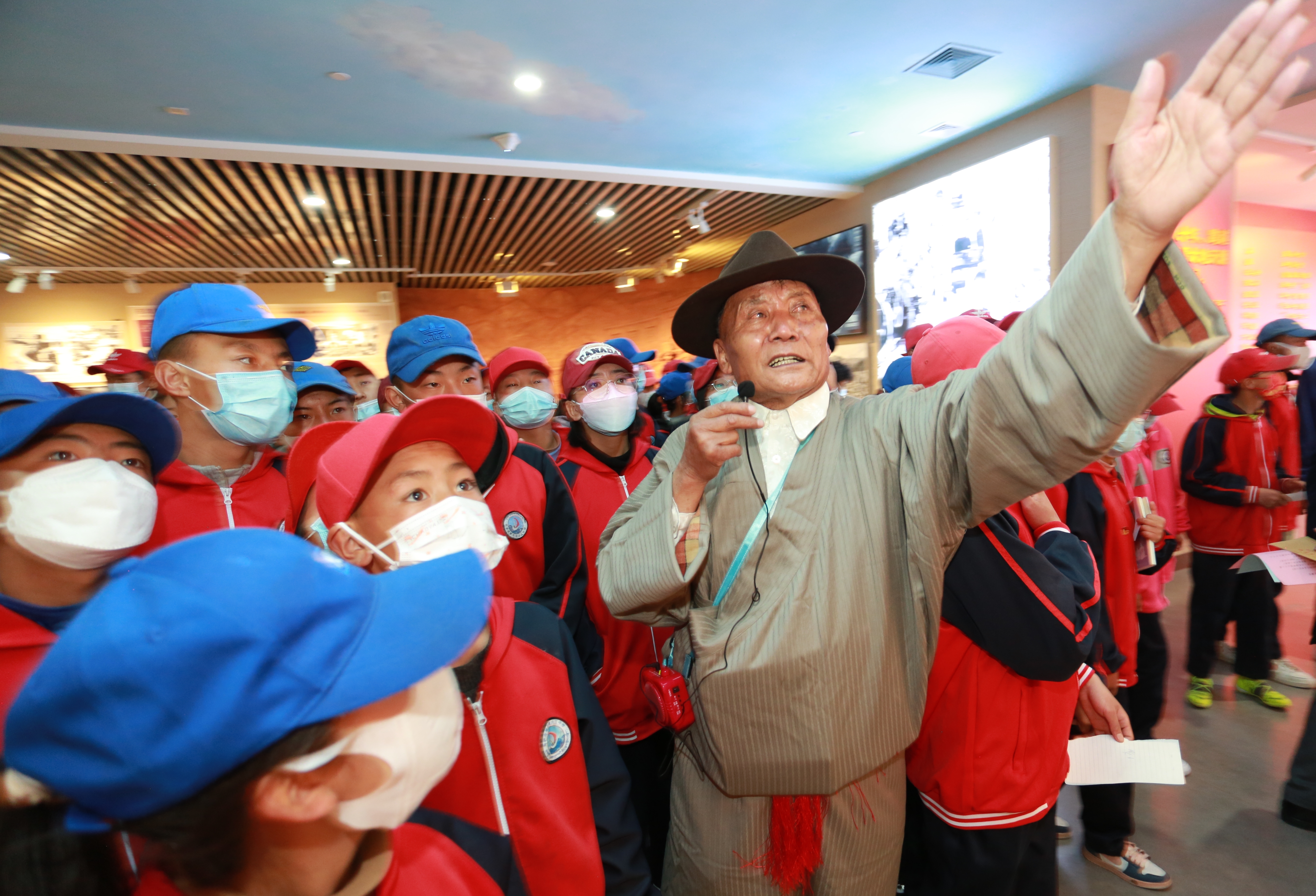 普次仁正在给参观的学生进行解说(2022年3月28日摄)。(受访者供图)