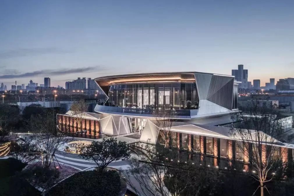 天曜的建筑立面,对标纽约高线公园豪宅,利用直线和弧形倒角元素的有机结合,打造高颜值的公建化外立面,仿石材铝板+仿铜色铝板线条,让建筑从冰冷变得有了温度。