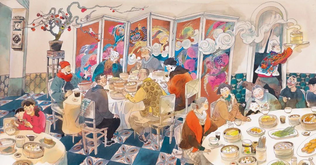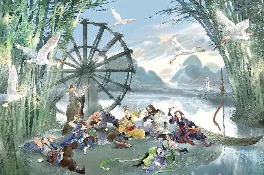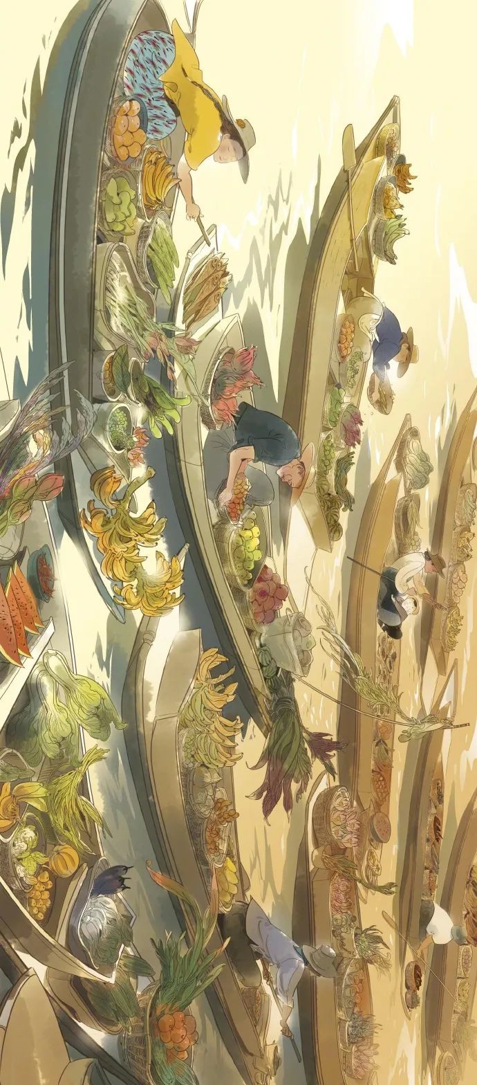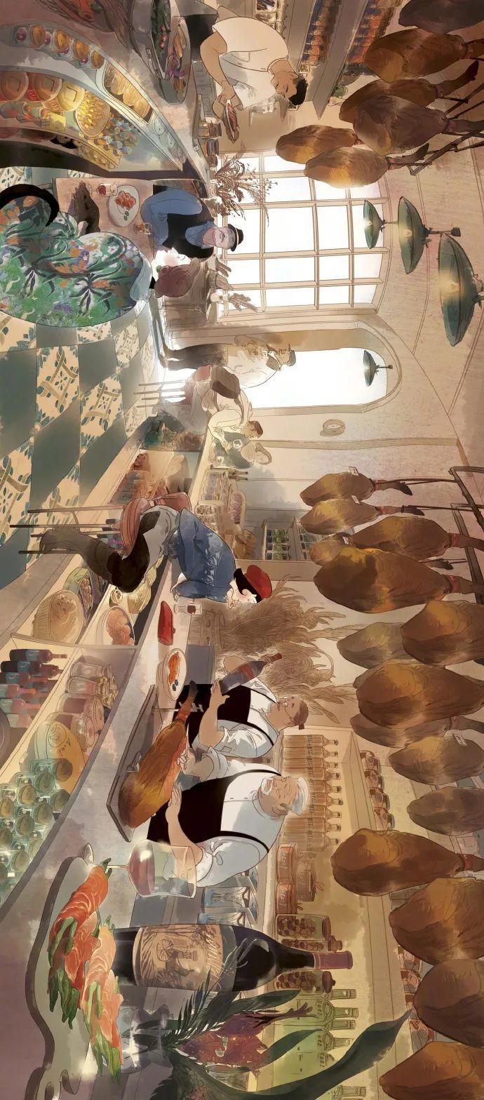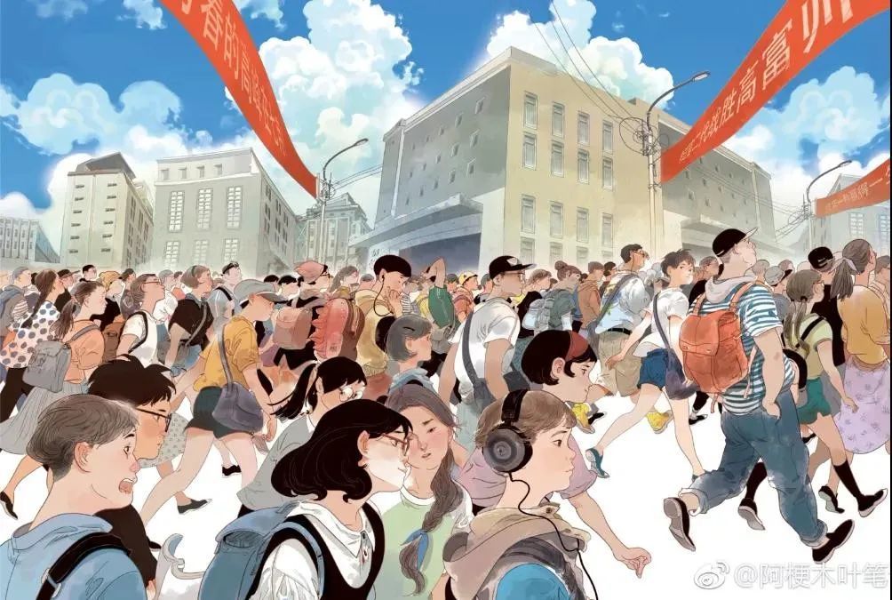 把画面中出现的每个人都画得鲜活而落地,是阿梗的强项,这类创作往往耗时很久,且需要画出不同形态的人物,对于新人来说,难度很大。