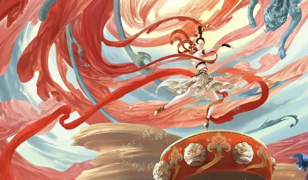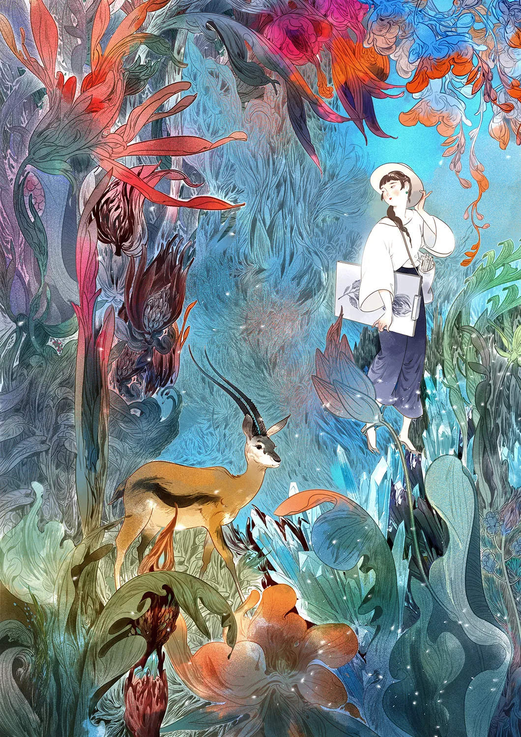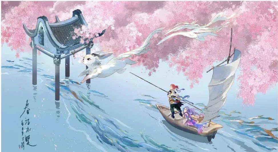 为游戏项目创作商业插画时,阿梗多用板绘,线条飘逸,色彩更为鲜亮。