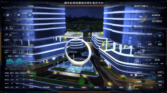 数据可视化监控平台将园区的基础设施进行 3D 展示,再将环境、能耗、人员、停车等数据通过 2D 面板呈现,有效、及时地做到事前预警、事中监测、事后分析,提高园区管理效率,提升园区的安全指数,推动园区的智能化发展。