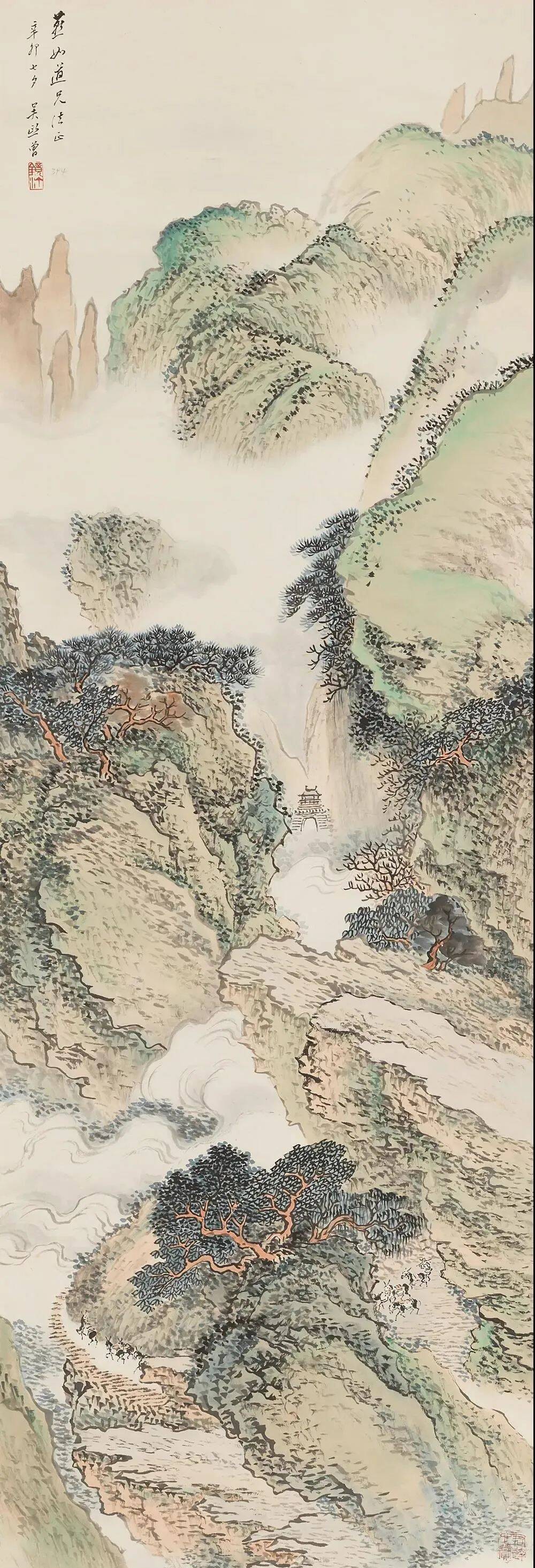 下面谈谈中国画的创作规律。我发现一个特别的现象,现在很多画家通过摄影、通过电脑就可以把构图完成,而且完成的很完美。我看了以后特别反感。这样还要你艺术家干什么?你还画什么?你都用电脑完成完了,你还有笔墨画什么?没有了笔墨,也就失去了中国画特有的意境,艺术家的情感还有什么用呢?另外,有些作品的尺寸巨大,我觉得这是需要讨论的。因为中国画这个画种在一幅画面上所适合承载的物像其实没有那么多。当然,我们有一些艺术家能够画出很好的大尺幅作品,有这样的范例。可是如果让所有人都画巨大的作品,甚至画中人物的头比真人还要打,怎么去表现?这就违背了中国画的规律。我们看仇英的一张《赤壁赋图》虽然只有几平尺,但是气象万千。我们看陆俨少的作品,都是小中见大,体现出一种意境。