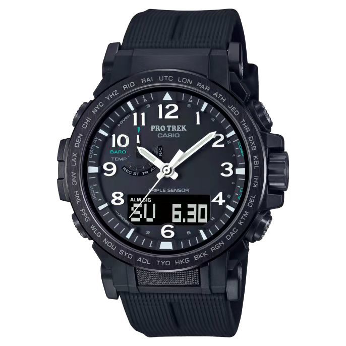 在功能方面,PRW-51NJ搭载了一系列强大的户外功能,包括罗盘功能;强劲的三重感应器技术测量功能,气压测量功能,温度测量功能,测高功能;强韧的太阳能动力;100米防水;可接收来自全球的6局电波信号;世界时间(29个城市);极强的耐低温性(-10℃),以及指针位置自动修正和等诸多强悍功能。