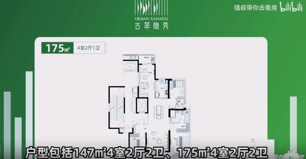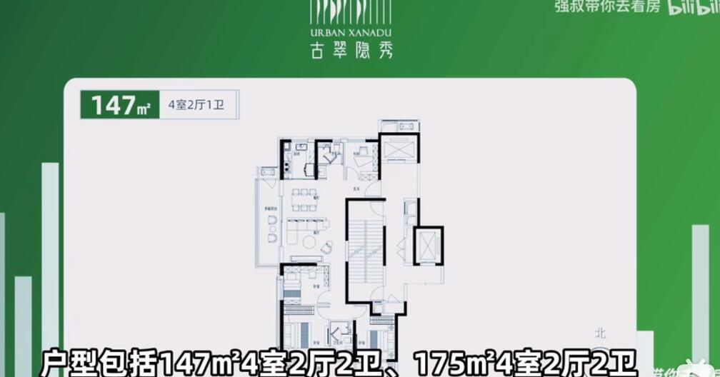 户型包括147㎡四室两厅两卫、175㎡四室两厅两卫、189㎡四室两厅两卫、192㎡四室两厅两卫,另外还有225㎡和248㎡两个户型。