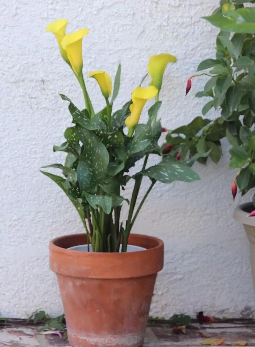 马蹄莲原本是生长在非洲东北部地区的一种热带花卉,喜欢常年温暖湿润的环境,要保证每天有较多的光照,它的耐寒能力比较差,冬季养护温度需要维持在5度以上才能安全越冬,冬季温度在5~12度之间有利于适当休眠,一年可以开花更好。