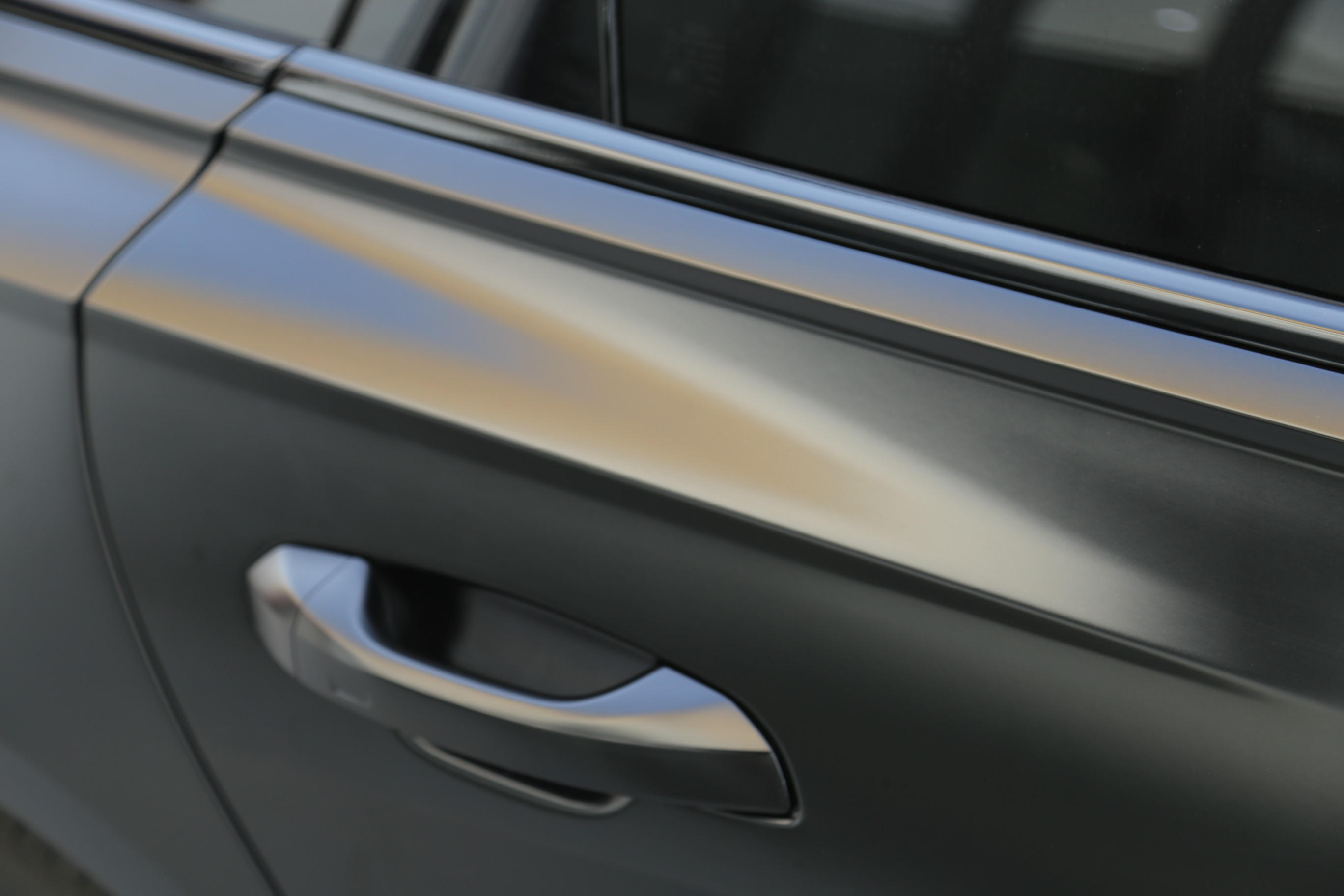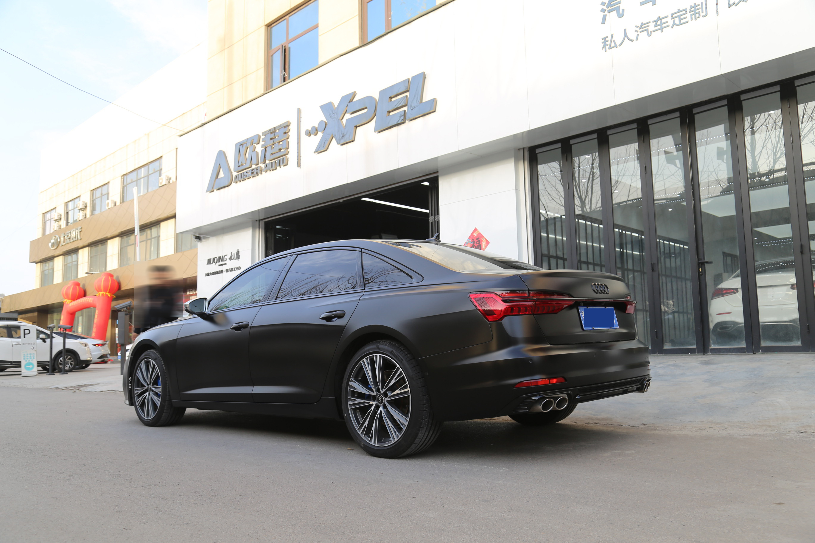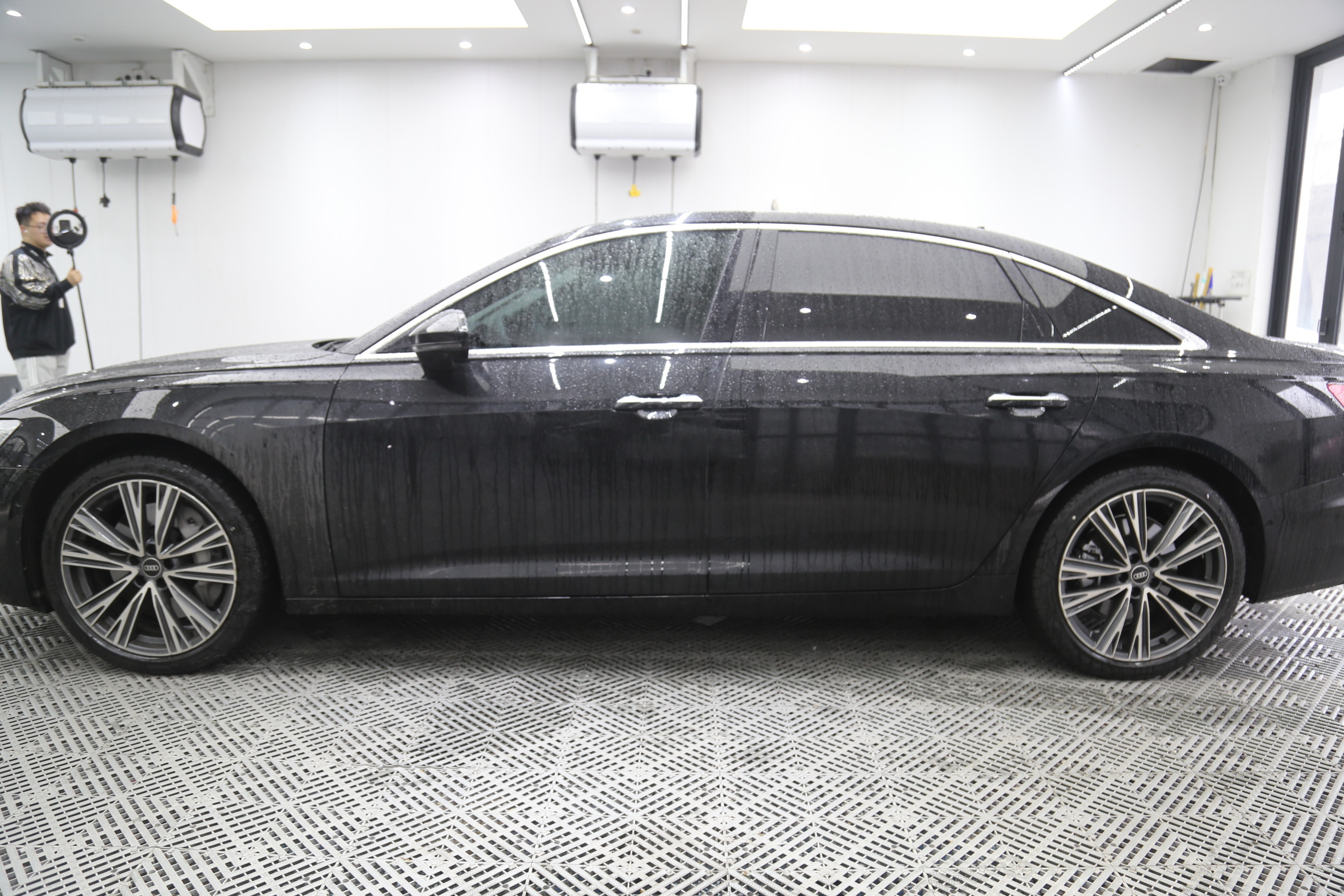 接车检查我们会详细记录车身各部位状态并和客户确认,避免引起误会。这台车也是走的黑武士风格,原车是黑色,再贴个更有质感的陶瓷黑改色膜,全车镀铬条也要贴成黑色,让整体更加统一。前杠升级一套RS6的前杠,运动风更强烈,当然也少不了奥迪的标志性银耳后视镜。