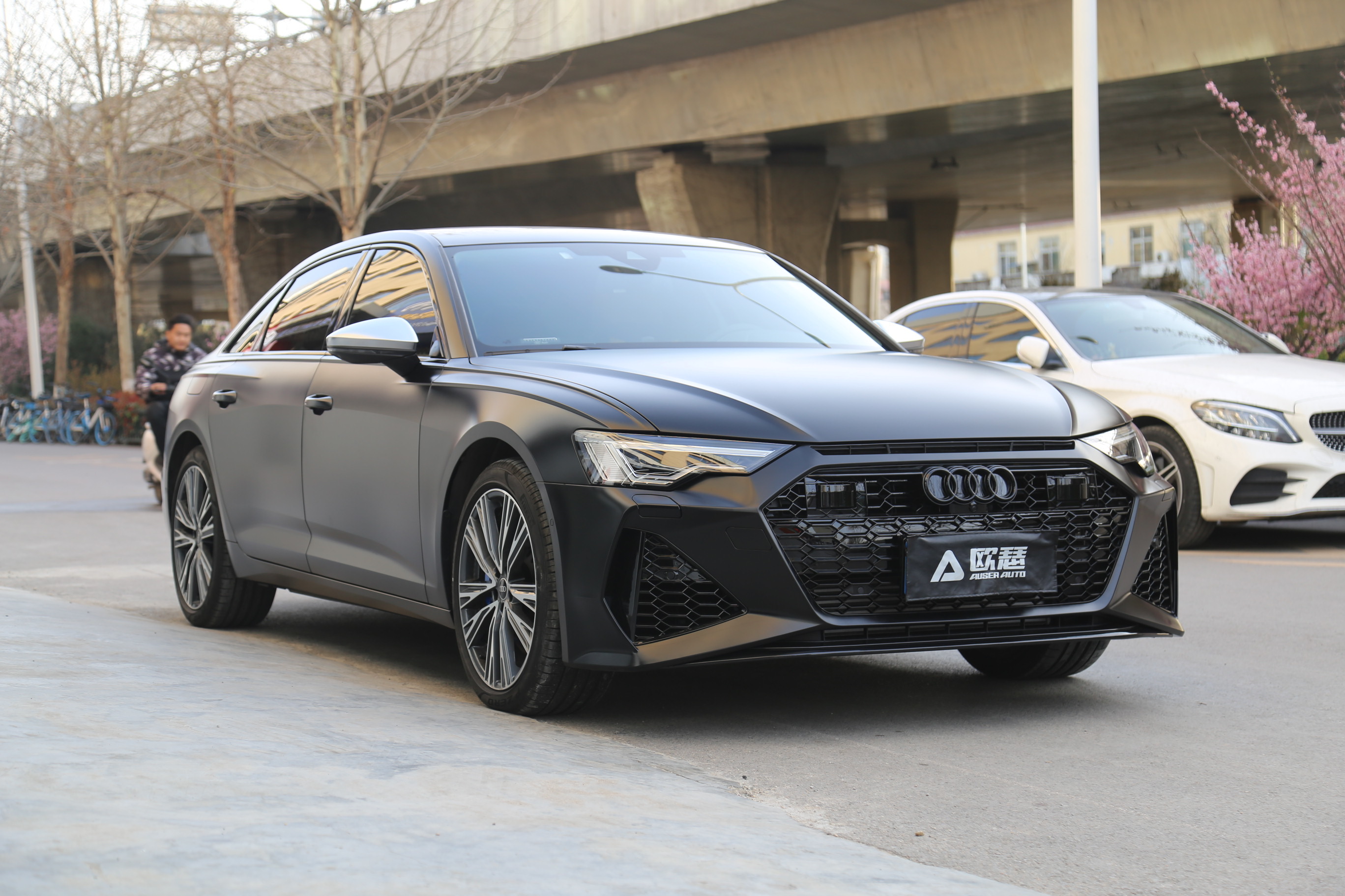 施工项目:陶瓷黑改色膜+RS6前杠+银耳后视镜+镀铬条黑化