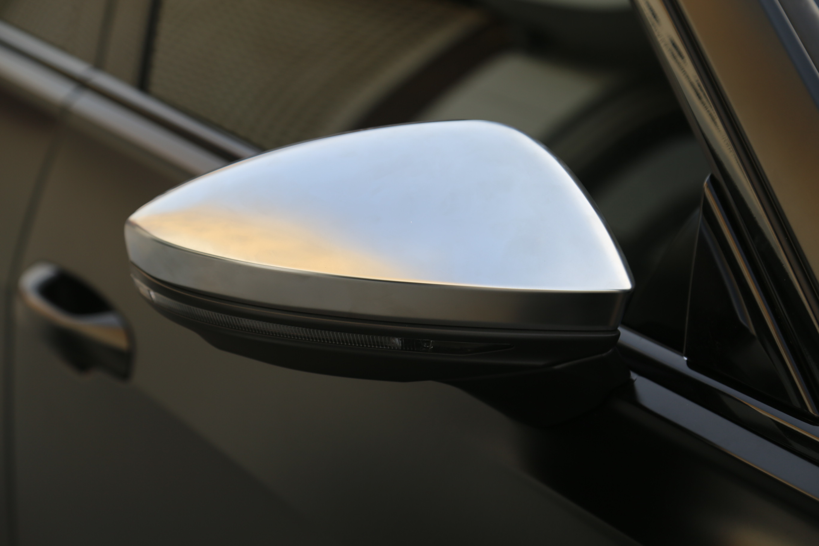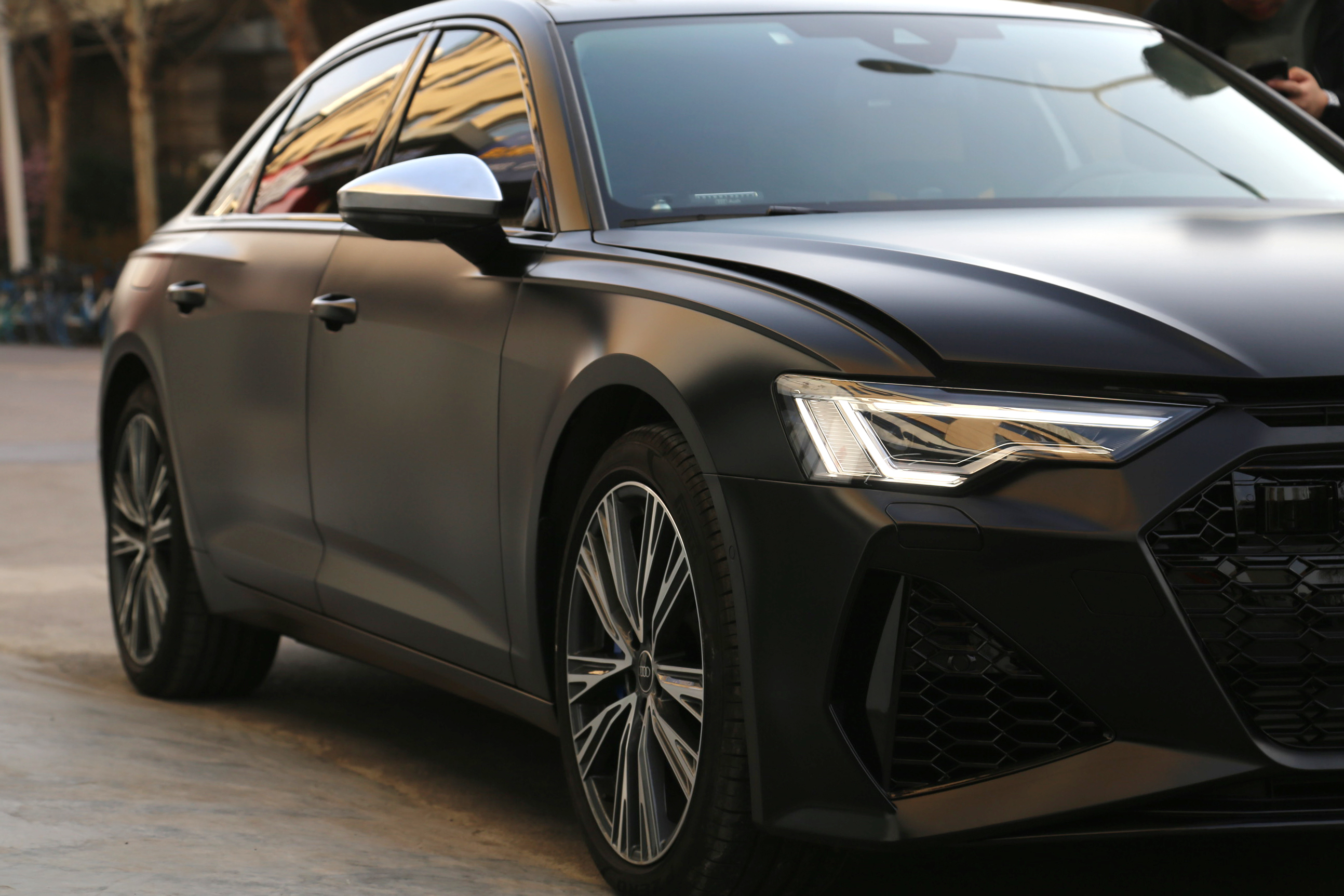 陶瓷黑改色膜是哑光质感的,阳光照射下还有点泛金色,非常好看。前脸换成RS6包围之后颜值直线上升,连车标这样的细节也没放过,换成了黑色车标。下一步车主应该就是换一套轮毂了,好车配好鞋,肯定颜值更上一层楼。纯黑色的车身搭配上标志性的银耳后视镜,就问你喜不喜欢!
