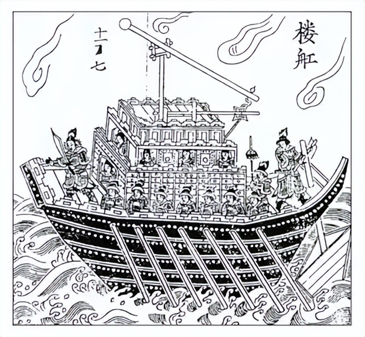 按照《日本书纪》记载,唐船共170艘。当时唐军的常备战船主要有战舰、海鹘、蒙冲、黄龙、双利、平乘、八棹、舴艋、艓子,船上还配备了纵火器。唐朝一般的战船可载500—700人,两万水军平摊下来,每船将近120人,空余的地方可以运载军粮。