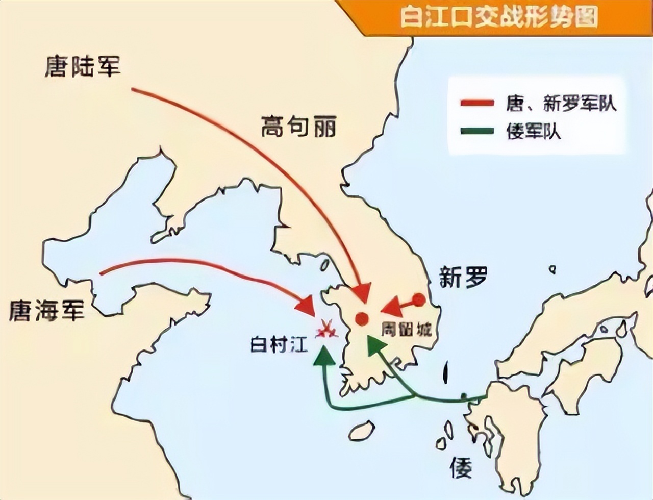 编者按:公元663年的白江村之战(又称白江口之战),是中日两国历史上第一次交战,战役的结果就是倭国大败。直到丰臣秀吉侵朝,日本九百年没敢对朝鲜半岛用兵。战争背景就是唐朝和日本在东亚的争霸战。