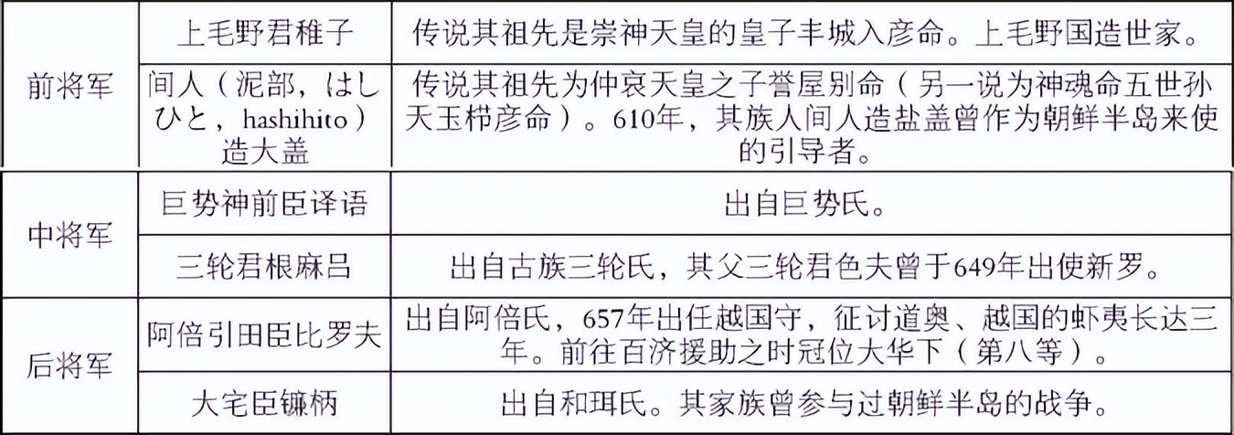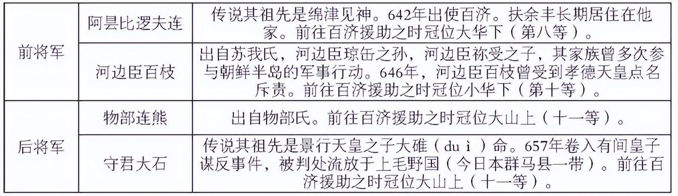 第三批倭军到来时间是663年三月,兵力27000人。六位将领信息如下: