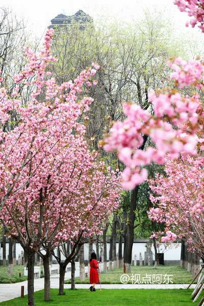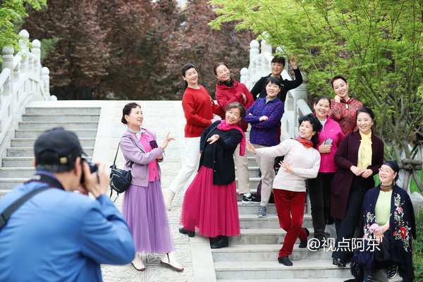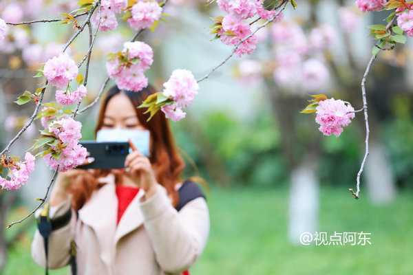 有许多爱跳舞的大妈,在景区里及樱花树下赏花拍照,玩得乐开了花!(图文/视点阿东)