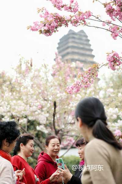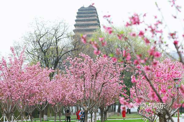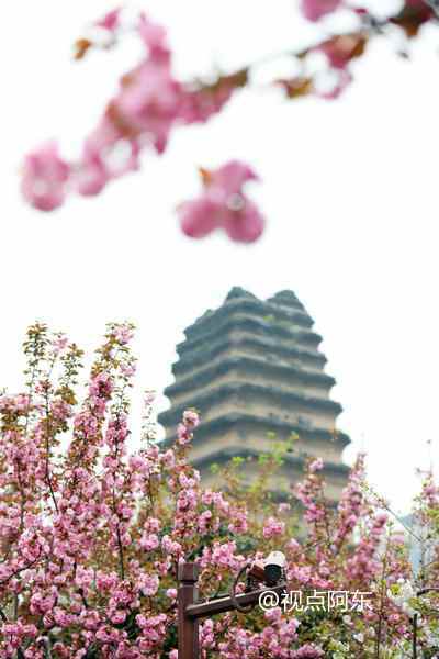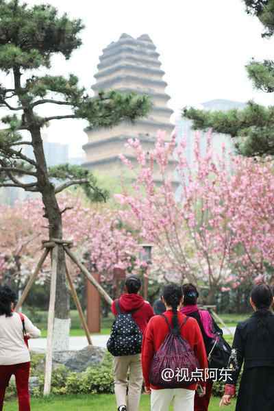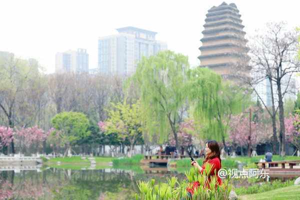 春天来了,小雁塔景区内樱花盛开,柳树发嫩芽,园区内一派生机盎然的景象。