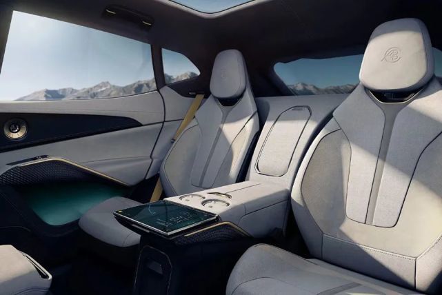 新车采用四座设计,用户可以选装五座版本,后排配有独立9英寸屏幕,在这里可以操作车机系统,以及对车辆进行设置。另外,新车搭配固定式全景玻璃天幕。
