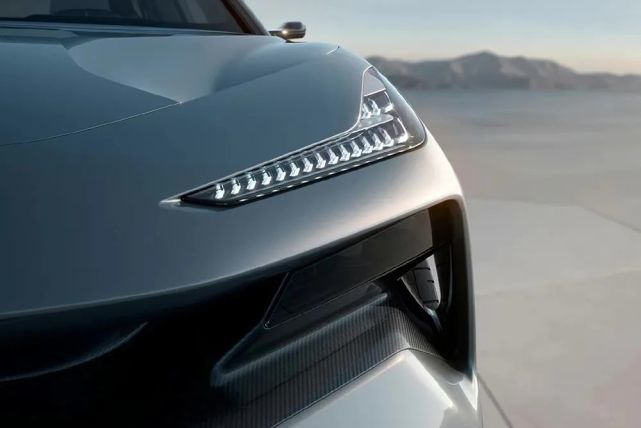 路特斯旗下车型都喜欢利用各种空气动力学设计,这台ELETRE同样如此,整车在外观设计非常夸张。分体式大灯绝对是车头最漂亮的设计,上方是眼神犀利的LED日行灯,内部采用了纵向布局排列,下方是远近光一体灯组,隐藏在前包围两侧。