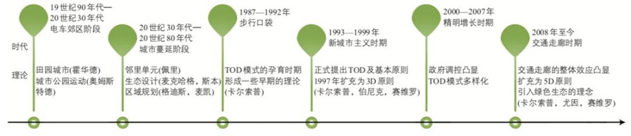 TOD模式的雏形可追溯至19世纪末至20世纪初的美国,其目的是为了解决二战后美国城市的无限制蔓延而采取的一种手段。