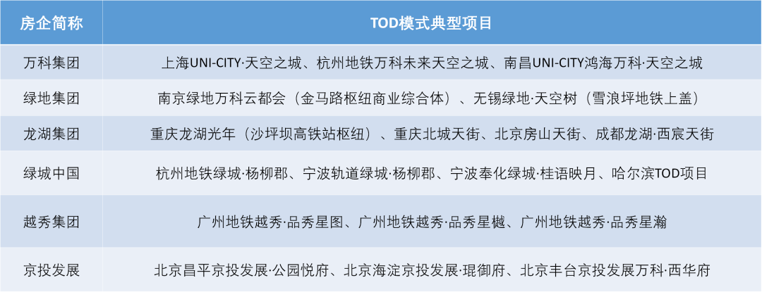 据统计,目前已经有绿城、万科、龙湖、世茂等20多家房企在布局TOD项目。由于具备轨道交通专业背景和开发资质的房企仍为少数,TOD项目开发复杂、投资大,多数房企发展TOD项目选择合作开发模式,房企与地铁公司合作已经成为主流趋势。