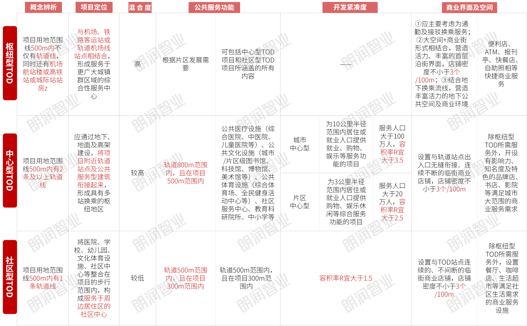 依照我国《城市轨道TOD综合开发项目通用技术规范》中定义,可分为“枢纽型TOD”、“中心型TOD”和“社区型TOD”三种类型。
