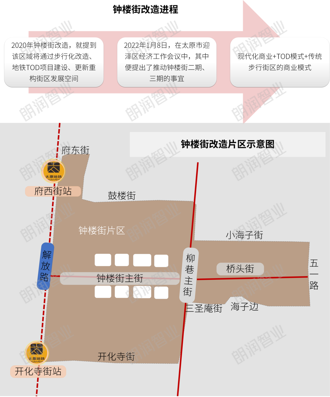 太原钟楼街临近地铁2号线,有府西街和开化寺街2个站点。后期规划TOD商业,可连接起食品街、鼓楼街、督军府等建筑,形成发展商业联动发展。