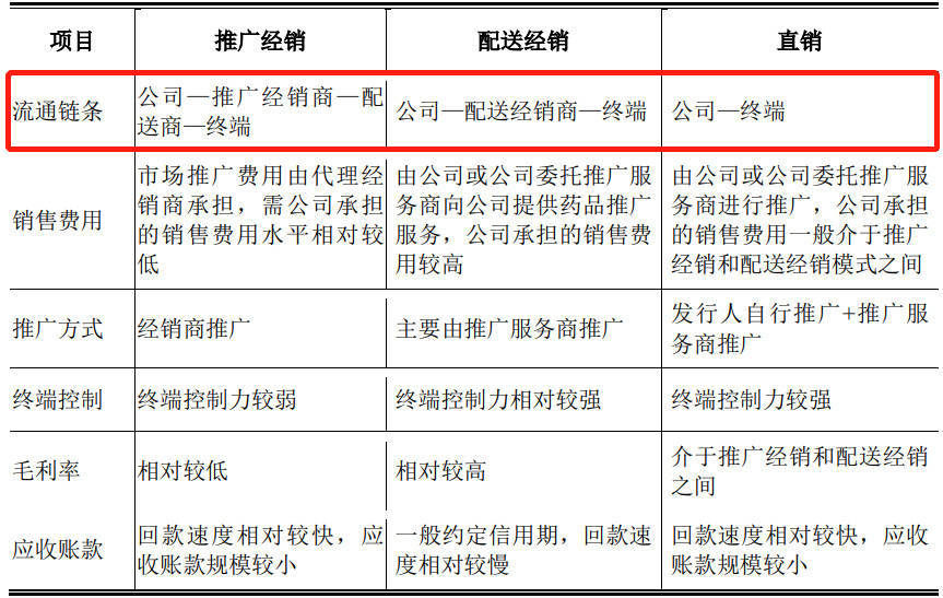 在配送经销模式下,配送经销商不承担市场推广职能,仅承担药品配送职能,发行人向配送商直接销售并由配送商直接将药品配送至医院、药房等终端,推广义务由发行人或发行人合作的推广服务商承担。