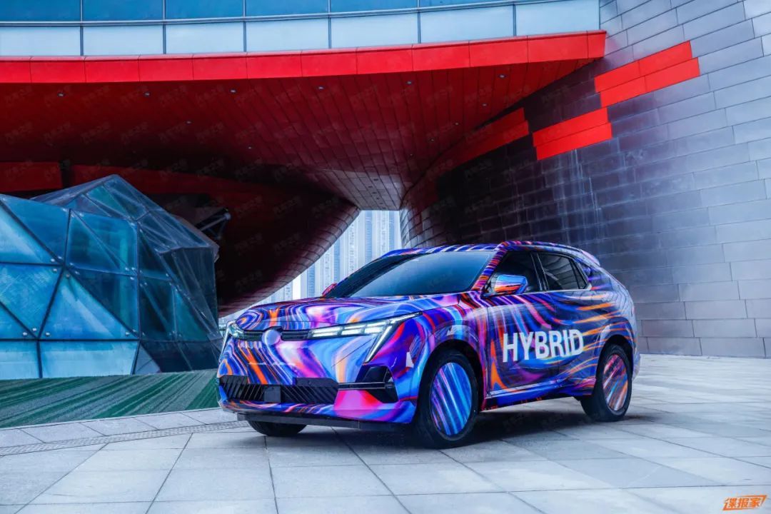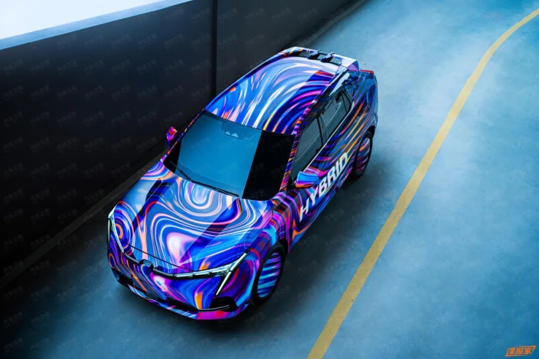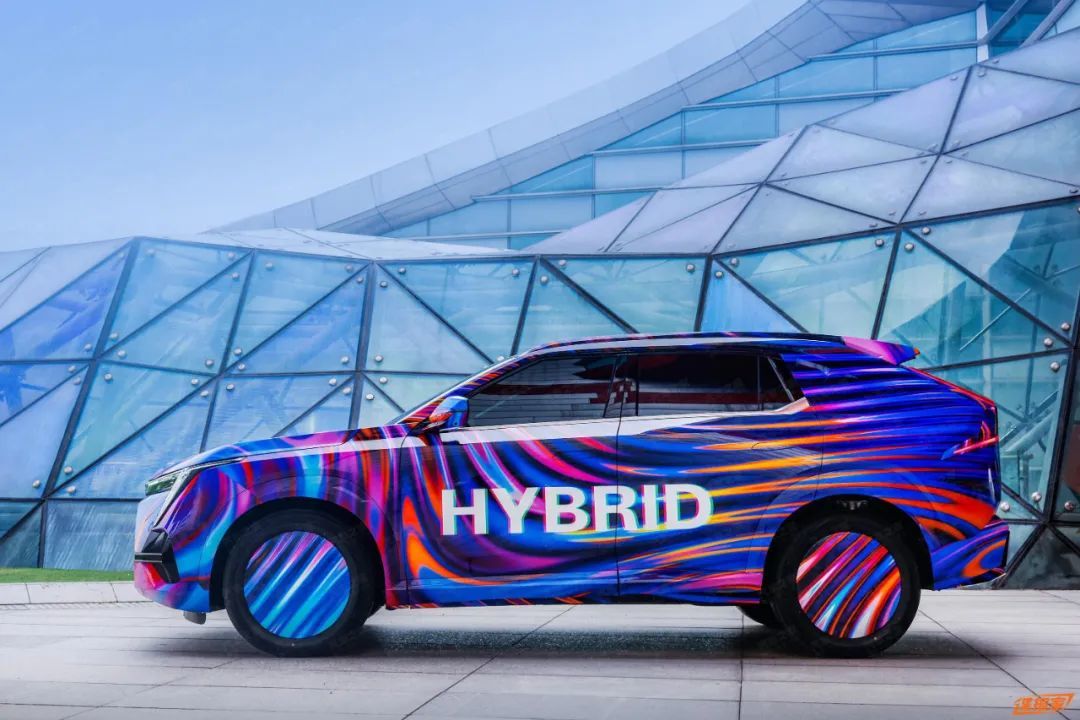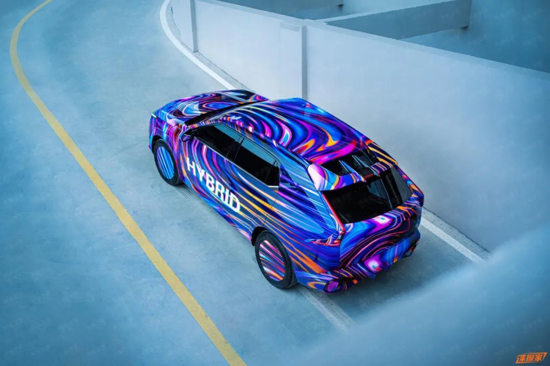 侧面可以明显的看到“HYBRID”字样印在车身贴纸上,似乎在告诉我们这将是一台混动车型,但官方尚未透露是何种混动形式。与此同时,新车采用饱满的车身设计,搭配贴纸的流线型设计,强调了运动感。