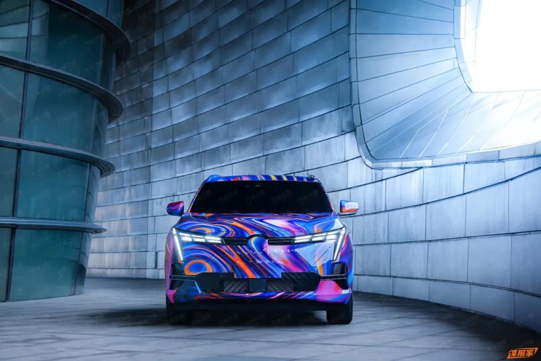 广汽传祺官方发布了EMKOO谍照。新车车身进行了全方位的彩色贴纸伪装,可以看出的是,新车采用凌厉的前大灯组,还融入了颗粒灯块的元素,搭配类似机甲风格的下格栅,看起来十分不好惹。
