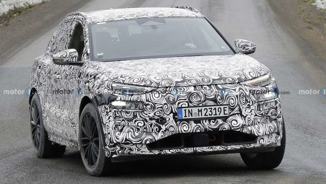 一张奥迪Q6 e-tron的实车无伪装前脸谍照被曝光了出来,目前该车仍在海外进行紧张的研发测试当中,新车采用了一整块疑似铝合金的银色封闭式进气格栅,搭配黑色四环LOGO。