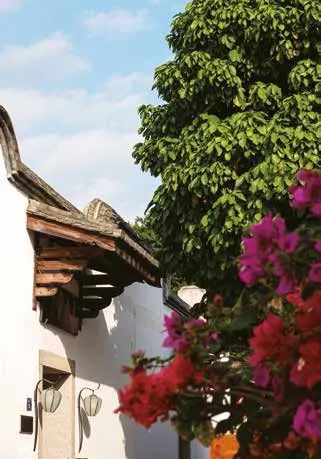 三坊七巷的房屋门面都很朴实,走进去才知道其中另有天地,厅堂布局森严,高大开敞,不失气派。庭院的布置匠心独运,一个六角亭,一片假山石,往往还有一棵参天大树。如冰心回忆中所说,“巨大的树干之外,它的繁枝,一垂到地上,就入土生根。走到一棵大榕树下,就像进入一片凉爽的丛林,怪不得人称福州为榕城”。就这样的一户户门面,连接起“坊”和“巷”,一棵棵庭院中的古树,铺满了福州的心脏。