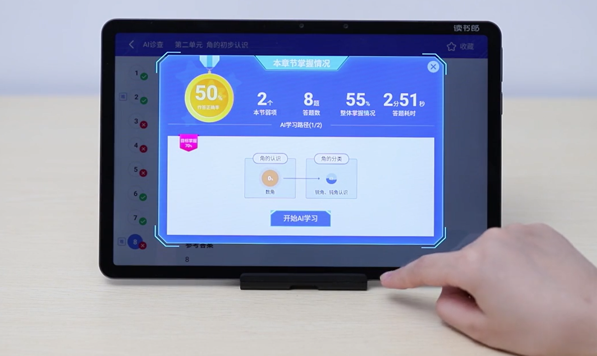 从内容来看,C30不仅拥有丰富的精品同步资源能帮助孩子打牢学习基础,帮助孩子进行进行教材内容的巩固提升。更有AI学习、同步学习、作业辅导和我的应用四大内容板块满足孩子多场景化学习。其中,AI学习作为读书郎学习机的一大亮点,囊括AI精准学、AI成长规划师、智能测评等多项智能应用,有针对性地帮助孩子查漏补缺,精准做到因材施教,让孩子学习更高效。