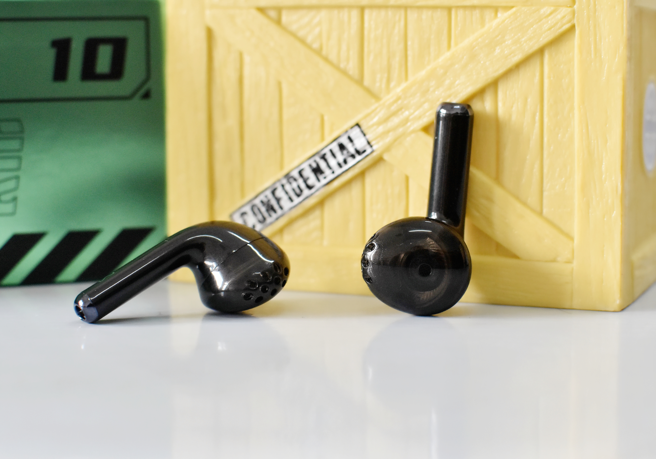 SONG PLAY采用短柄半入耳式一体化流体设计,耳机(单耳4g重量)轻巧且形状符合人体工程学,旋转开盒的机甲星环充电仓设计,加上带有专属呼吸灯效,时尚新潮科技感十足,炫酷好玩还方便携带。