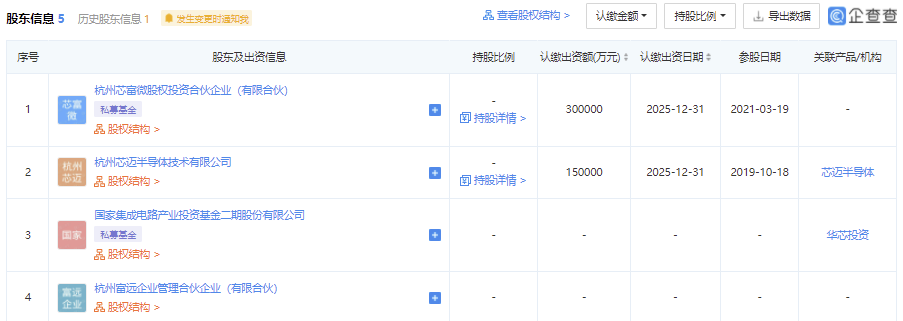 3月30日消息,根据企查查资料显示 ,近日, 国家大基金二期投资了杭州富芯半导体 。不过,具体投资金额和持股比例尚不清楚。