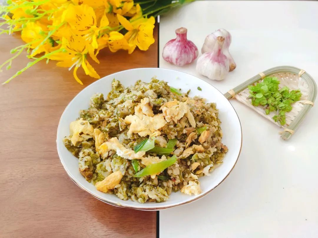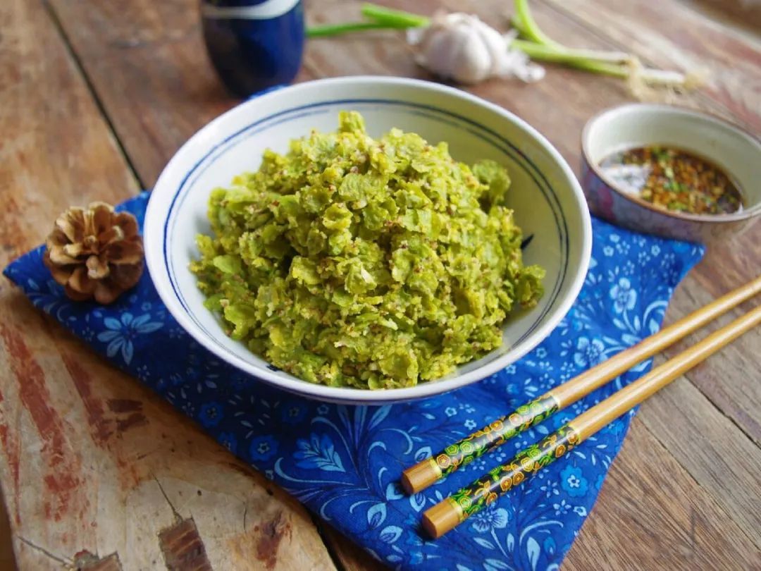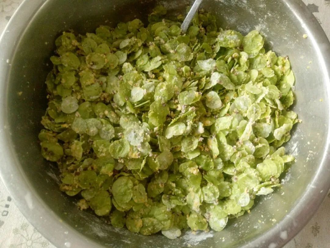 10. 蒸好的榆钱饭,就着蘸料,简直太美味了!