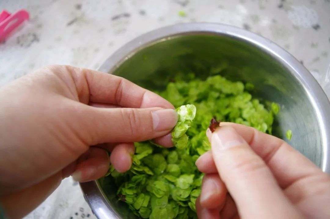 2.择掉每朵榆钱的小梗,这个需要耐心。