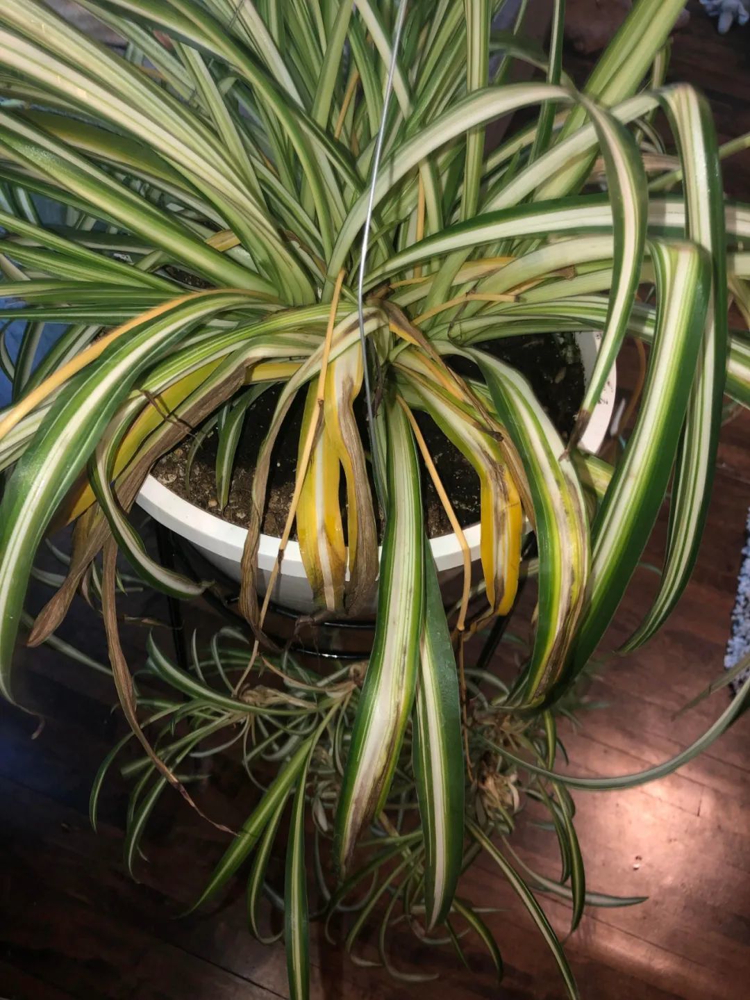 如果叶片上沉积了太多的灰尘,就会影响吊兰进行光合作用,叶片上的叶绿素没有办法吸收阳光,就会导致叶子尖端干枯,特别是植株底部的老叶。