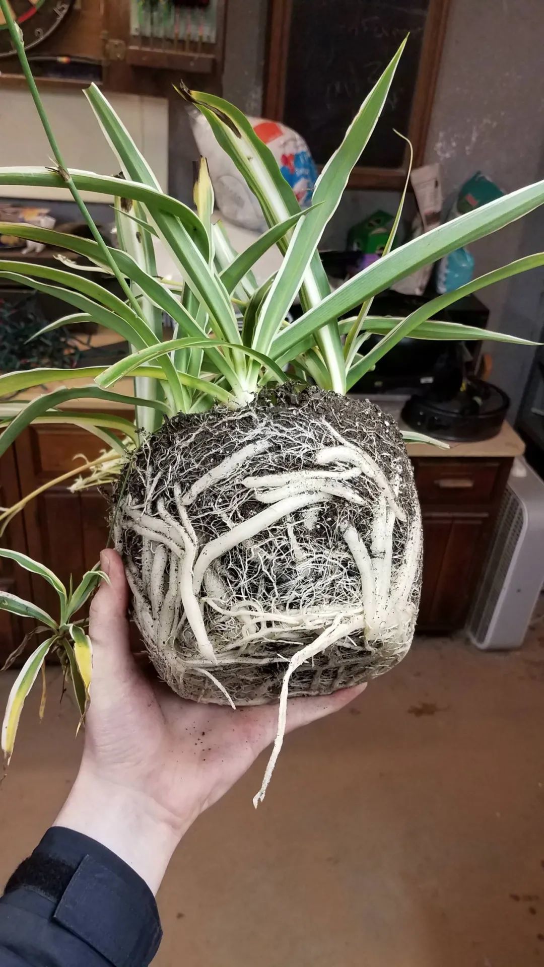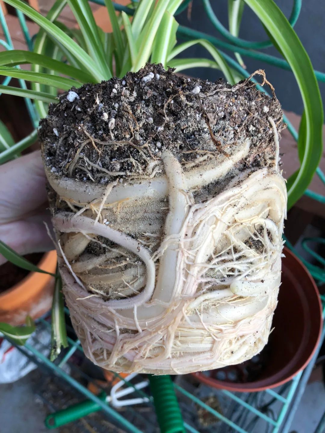养护盆栽吊兰保持有适当的光照,维持一定的空气湿度,加上合理的浇水,吊兰会长得极其旺盛,底部的根系长得特别健壮,如果将吊兰的根系挖起来,会发现它的根会变成一个个萝卜状。
