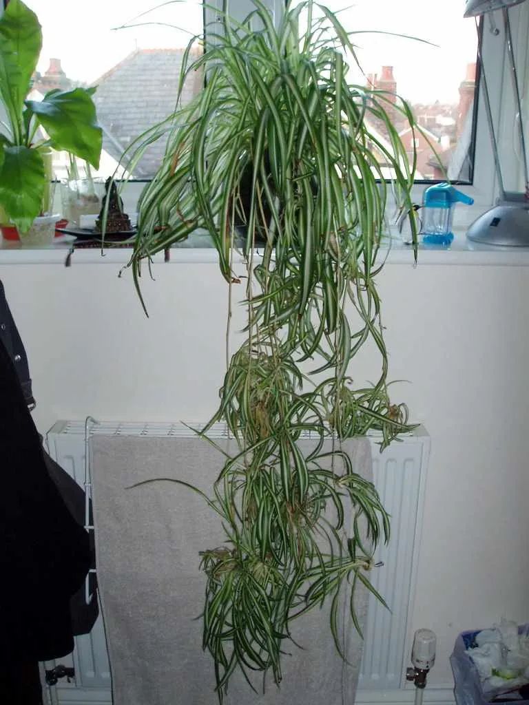 上面是水多和过度遮阴的吊兰,茎叶徒长